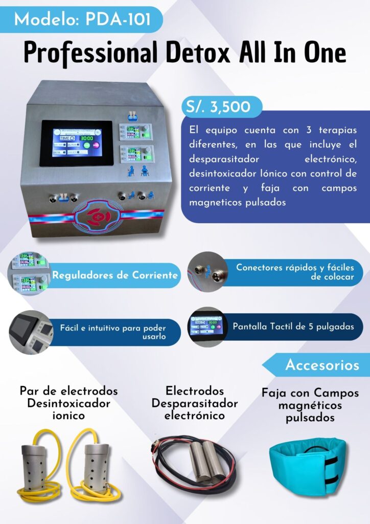 Terapia dirigida a la desparacitación del cuerpo mediante un aparato electrónico que emite una frecuencia de 30kHz, la cual es recibida por el cuerpo por medio de unos electrodos de acero, logrando la muerte de virus y bacterias dentro del cuerpo.